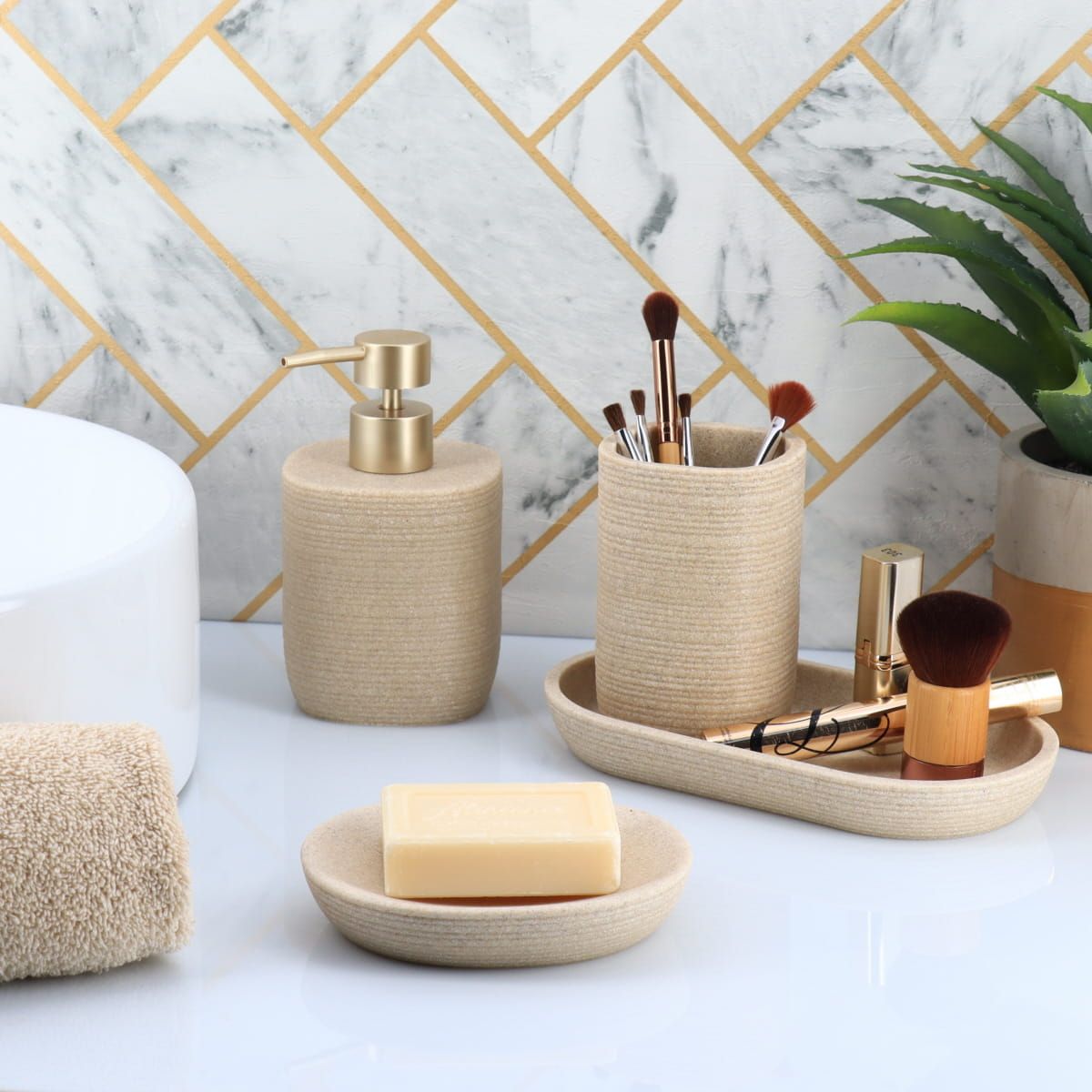 Jabonera Estriada (Beige) De Poliresina